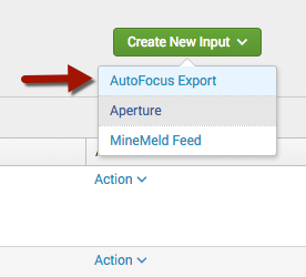 Within the Add-on, click the Inputs tab at the top left. Then click Create New Input and then select AutoFocus Export.